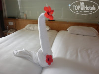 ПРО НОМЕР - телевизор плазма метровая, кровати две большие, постель чистая, сантехника вся новая и чистая, душ новый, мебель вся новая, кондиционер, сейф. все в отличном состоянии и работает. Мне номер очень даже понравился. Номер убирали каждый день. 3 раза делали всякие фигурки из полотенец.