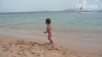1.Очень понравился пляж,прекрасный вид на остров Тиран.Вход в море расчисщен,но в спец.обуви удобнее.Риф великолепный!!!Лежаков хватало и на пляже и около бассейнов.