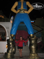 Здравствуйте! Отдыхали в Аладдине. с 19.04.2012г по 30.04.2012г,летали в двоём,я и жена,от тез-тура претензий к туроператору нет.Перелёт нормально без задержек (трансайро) на высоте.Заселение быстро без денег,номер бунгало (2958) в середине территории отеля.Море и пляж отличные првда был ветер и небольшие волны. Питание нормальное мясо,курица,рыба каждый день , бедновато с фруктами.Уборка номера хорошая персонал неплохой.Анимация тоже неплохая.Можно пользоваться услугами трёх отелей.В общем отпуск был отличный, рекомендую всем эти отели.