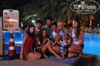 Отдыхали с друзьями(т от 20 до 25 лет)Несмотря на то, что отель старенький -все остальное было на высоте! отмечу то что в отеле много русских и также много иностранцев, но слава богу в нем два разных больших бассейна и с немцами, к примеру, пересекаться не пришлось, они спокойненько лежали на своем тихом бассейне) для русских и вообще активных людей есть другой бассейн, там весь день кричит музыка, постоянно проводятся игры , анимация хоть и слабенькая была., все равно нашли чем себя занять!ОТМЕЧУ, что в Турции не первый раз, и в этом отели меня удивила кухня.Она была настолько разнообразной, что за 2 недели я все блюда неперепробывала! Сервис хороший, в отели все приветливые, очень любят детишек! для детишек кстати там есть горки, отдельный бассейн с теплой водой и миниклуб)ПРо Клубы: если кто едит тусить и отдыхать- Вам именно туда, они в пешеходной доступности, магазины также! В клубы проще идти самим и не брать билеты у аниматоров!