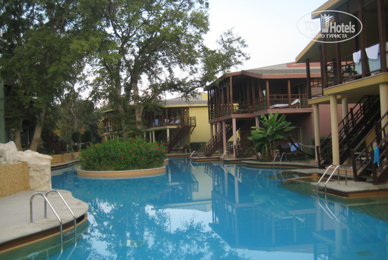 Она находится в районе Лейк Хаусов, так называемые Домики на Озерах. Номер нам достался на втором этаже, просторный, с террасой и двумя лежаками. К бассейну ведет деревянная лестница. Тишина, солнышко..цветы... гамаки... в общем, все понравилось. Уборка была нормальной, ежедневной, бар пополняли местными сладкими газировками, лебедями не удивляли. Чаевые не оставляли. Что удивило – из привычных мелочей из ванной комнаты были только халаты, палочки для ушей, ватные диски, шапочка для волос для душа и жидкое мыло. Странно – но шампуня, кондиционера, лосьона, мочалки, зубной пасты не было. Первый раз такое )). Звонок на ресепшн ничего не дал – ну не приняты у них эти мелочи)