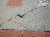Территория отеля чистая, дорожки моют керхером, но в амфитеатре разбили бутылку стеклянную, и на следующий вечер все мелкие осколочки были на месте.