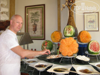 Все классно. Каждый найдет себе пищу по вкусу. Рыбных блюд маловато. Фрукты и овощи я так понимаю зависят от сезонности. Но было всего достаточно - арбузы, персики, резаная кусочками дыня, яблоки, абрикосы, грейфрут, апельсины, мандарины, начиналась клубника. Вообщем питание и приготовление пищи выше всяких похвал. Кормили на убой и ешь сколько хочешь хоть по несколько подходов. Никто за тобой не наблюдает и не ограничивает. Некоторые пишут, что лучше местные напитки не употреблять. Полнейшая глупость. Очень вкусные соки, особенно манго и гуава, отлично делают разнообразные коктейли, как алкогольные, так и безалкогольные, прекрасное местное пиво - хорошо освежает и не пьянит, из вин лучше употреблять красное, это нам сказали сами официанты и оно действительно так. Так что в трате денег на импортный алкоголь совсем нет надобности.
