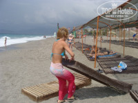 Пляж... Лежаки очень неудобные, старые, ужасные, вход в море тоже ужасный, глыбы, камни и тд...