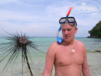 4. Остров Ко Талу. Переезд 1,5 часа из провинции Чамнамбури в провинцию Районг. По дороге видели плантации фруктов и насаждения Гевеи (каучуконос). Привезли на берег моря, выдали бесплатно маски и ласты, на катерах примерно за 20 минут доставили на остров. Здесь нас постигло некоторое разочарование. На острове нет ни одной пальмы, обычная тропическая растительность. На песчаном пляже как и везде в это время отлив, приливы утром и вечером. Если вы прилично плаваете, то тут вам делать не чего. В пятидесяти метрах от берега глубина по пояс, а дальше начинается коралловый риф, где есть рыбки и множество морских ежей. От кораллов до поверхности примерно пол-метра и поранится о них и тем более задеть ежа очень легко. Воспоминаний об этом хватит на всю оставшуюся жизнь. Рыбешек мало, сразу возникает ностальгия по Красному морю. Экскурсия включает приличный обед и короткую рыбалку для желающих в нашем случае прошедшую без улова. Отдали за экскурсию по 2400 бат на человека. Считаю, что того не стоит. За день до этого плавали на пароме на остров Ко Лан от пристани в районе Волкин стрит, ближайший Паттайе. Получили все то же самое, кроме обеда и потратили в итоге по 230 бат на человека.