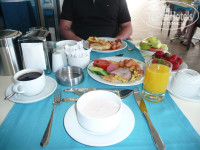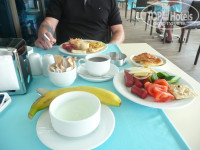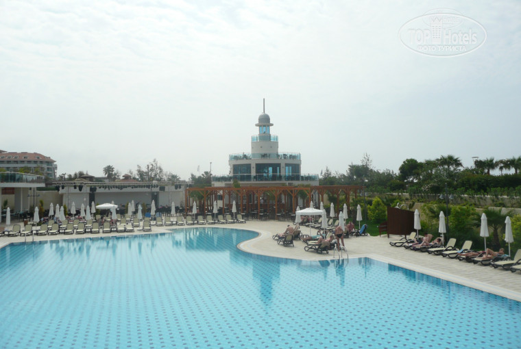 Питание: Все очень вкусно. Выбор не огромнейший, но я думаю каждый найдет себе что то по вкусу. Мясо, курица, рыба - всегда все было. Какие то канапешечки, суши крутили, мороженое целый день, сладостей много (ела каждый день пахлаву и турецкие сладости - объедение). С утра апельсиновый фреш, но пару раз показалось разбавили с соком из пакета (может показалось) Фруктов много, почти каждое утро была клубника, вечером и на обед почему то не попадалась (может пропустила). Так же были бананы, арбузы, дыни, груши, яблоки, апельсины, киви, наверняка что то еще было (просто я ела только эти). Завтраки стандартные - яичница, блинчики, тосты, выпечка, сосиски, сыры (один раз наткнулась на Дор Блю), колбасы (в том числе вареный язык и т.д.) Вообщем стандарт. Обед и ужин разнообразнее. На ужин один раз видела жарили лосось, сама не пробовала, по вкусу не знаю. Аля карт - были в обоих, особым изыском не впечатлил, но очень понравились ребрышки из ягненка в "голубом" ресторане (просто не помню как называется, там преобладает голубой цвет в интерьере))))) По поводу закусок после обеда можно перекусить в баре возле бассейна (приносят сами официанты, заказываешь по меню) бургеры, паста, гезлеме, сырные крокеты, картошка фри и т.д. - все очень вкусно. Питание - 5 баллов из 5.