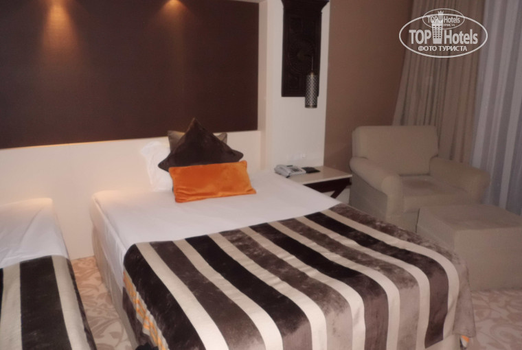 Приехали мы в отель примерно в 22:00. Нас встретили с улыбкой, угостили рахат-лукумом, и разместили в течение 5-ти минут. Мы изначально бронировали стандарт с видом на море, поэтому ни о каких доплатах даже не было и мысли. Номер мне показался очень просторным. Стандартный набор: удобные кровати, меню подушек (чего я раньше не видела в других отелях), телевизор, мини-бар, халаты, тапочки. Так как мы приехали поздно, фрукты в номер нам принесли уже утром следующего дня. Очень приятно, и дело не в самих фруктах, а во внимании к новоприбывшим гостям. Единстенным мне показались скромными банные принадлежности. В других отелях помимо стандартов шампунь, бальзам, гель также и предоставляют и женские принадлежности, и бритвенные принадлежности и щетки для зубов и т.д.