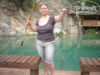 Пикник-Рыбалка от компании Пегас Туристик -это сказка. Получается что мы получили 2 действ в однм флаконе 1. Небольшое джип-сафари т.к. привозли на лощадку где стояли 2 Урала покрашенные в "зебру" и 2 открытых джипа и поскольку в мае еще речки не совсем пересохли (мы ехали джипе) водитель на скорости их преодолевал и в результате мы поливались водой(нам было весело, но предупреждаю, берегите камеры) . В общем привезли нас на другую площадку,смотрим ничего примечательного, пали духом.... Но сказли что надо подняться по дороге метров 50, что мы и сделали вот тут открылсь вся красота... небольшое чистейшее озеро и водопад высотой с 5-этажный дом ну и речушка в которой море форели, удочки новые добротные(не то как мы были на рыбалке в районе Кемера ). Рыба ловится у всех и много, мы штук 10 поймали нам надоело и мы пошли с сестрой в так называемую хижину в бар...и остаток времени повели там потму как и обед вскоре подошел,а мужички наши пошли ловить в более отдаленное место где форели поменьше , а азарта стало быть побольше..Затем эту выловленную рыбку местные устроители собрали и пожарили нам на обед.
