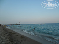 Главное преимущество-это море. Оно рядом, в 5 минутах, чистое, теплое. Вход в море хороший, плит нет. Пляж нормальный, мелкая и крупная галька. Лежаков хватает на всех, они старые, многие сломаны. На пляже стоит небольшой бар с напитками типа "Юпи".