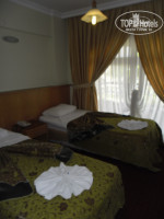 Отдыхала в этом отеле в августе 2011 года. Отель тянет только на 3 звезды.Территория маленькая,есть сад, в отеле грязно, мебель и сантехника в номерах старая. Персонал на ресепшене говорит по русски плохо. Приехали в отель в 8 утра. Заселили сразу в номер на 5 этаже.Номер был очень грязный! После просьбы заменить, сделали это на следующий день. Дали номер на 3 этаже, до чистоты ему конечно тоже далеко, но все-таки в нем можно жить.Полотенца в желтых пятнах, простыни в дырах. За 12 дней в номере убирались ежедневно, постельное белье сменили 1 раз, полотенца меняли 1 раз в 3 дня. Все время текла душевая кабина. Кондиционер работал нормально.С горячей водой проблем не было.