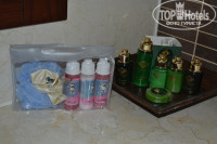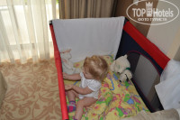 В номере нас уже ждала детская кроватка, горшок, ванночка,стульчик(чтоб доставать до раковины),набор детской косметики для ванной в косметичке, халатик и тапочки, в кровати был симпатичный медвежонок и пачка детского печенья ).