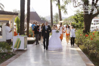 1. Нас встретили представители отеля, анимационная команда, отдел по работе с гостями, вручили невесте красивый свадебный букет. Вышли из отеля (нас осыпали лепестками) и направились через всю территорию отеля к морю. Пока мы шли, все нас поздравляли, аплодировали и кричали "Горько!".