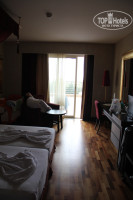 Итак, читая отзывы об отеле перед поездкой, была ужасно настроена. Отдых в отеле мне понравился. Но, есть одно большое НО, отдых именно в ХОРУСе, а не в ВИЛЛАДЖе. Это действительно 2 разные вещи!!! Если едете в бунгало, настройтесь сразу на 4ку с большим, большим натягом. Да, там в принципе, чисто, но, например в нашем домике, оказались только что выкрашены поручни на балконе, соответственно, воняло краской и ребенок, тут же схватившийся за них измазюкался. Ехали изначально в бунгало, потому что надеялись, что пока ребенок (1 год и 10 мес) будет спать днем, я смогу позагорать на улице (надеялась, что бунгало будут с выходом на травку) такие там есть, но это домики 19, 18 может 20, не запомнила сразу, поселится в них, нужно доплатить по 10 евро с человека в сутки, (в общем то так же, как и переехать в главное здание, в кот. мы в итоге переехали). Переехали почти сразу, сходив, посмотрев номера там, даже не раздумывая, я специально наделала кучу фоток, смотрите разницу. 5ка там только в главном здании, при чем хорошая!!! Нам предложили номера с видом на море с доплатой 20 евро "с взрослого рыла" или с видом на парковку " 10 евро с чел", мы не раздумывая захотели парковку и подешевле доплату, однако, нам очень, как я считаю повезло, потому что нам предложили номер с выходом на террасу, пусть и общую, но для меня (с ребенком, коляской, которую я могла беспрепятственно оставлять там, и с подругой в соседнем номере, с кот. мы могли по вечерам сидеть на общем "балконе" при этом у каждой из нас была открыта дверь в номер (с террасы) и мы не боялись, что кто то из детей проснется, а мы не услышим этого) короче, все это для меня было очень и очень удобно!!! Номера эти там находятся только на 0 этаже, там же где основной холл, т.е. лобби. начинаются с 5011, 5012 и т.д. по моему там их штук 5-6, все остальные номера в гл.здании будут на 1, 2, 3 и 4 этажах, там только небольшой балкон со стеклянным ограждением, красиво, но места не много.