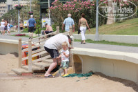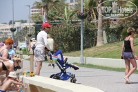 Пляж: хороший. песочек, мелко, шезлонги как обычно. Пластмассовые "друг на друге", зонты раскладываются и складываются. Бар рядом через променад. пластиковая посуда для выноса всего на пляж.