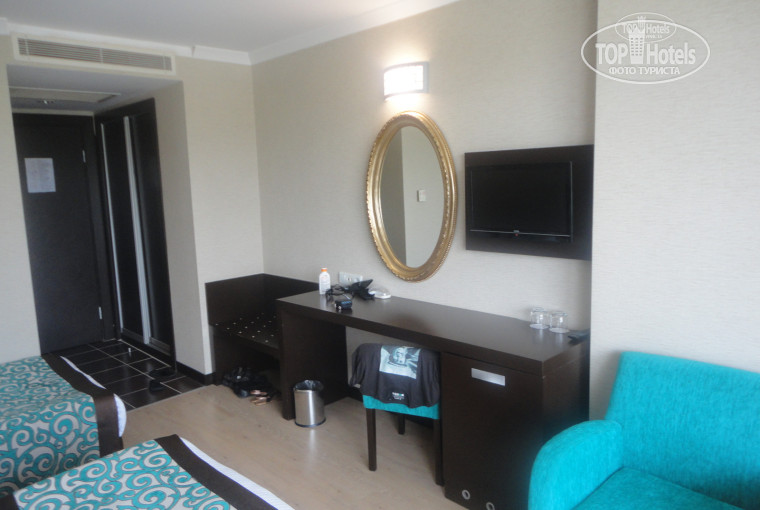 Приехали в отель около 14.00, заселили очень быстро. Номера были на 2-ом этаже, у друзей на 3-ем и 4-ом, с видом на мечеть. Номера хорошие, единственный минус пол застелен ламинатом, а не ковролином.Очень не комфортно босиком ходить по номеру без тапочек. Мечеть не мешает, только один раз проснулись от утренней молитвы.Потом спали с закрытым балконом и ничего не слышали.