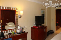 В очень просторном номере: две огромные кровати, журнальный столик с двумя стульями, рабочий стол со стулом, ЖК-телевизор LG, по-моему, 42 дюйма с возможностью смотреть видео через USB, мини-бар с напитками и закусками, джакузи, душ, умывальник, санузел, халаты, балкон с двумя креслами и столиком, чайник с кружками, чаем, кофе, сливками и сахаром, фен, весы. Единственно, что немного смутило - пол был облицован керамической плиткой и по ней бегали маленькие муравьи.