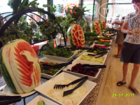 Отдыхали в Кирише с 18.07.11. Были напуганы фотографиями убитых номеров, но все обошлось! Жили в бунгало, подальше от бассейна, так как говорят не уснуть там и сырость, муравьи, у нас ничего такого не было, номер не новый но вполне, правда убирались поверхностно. Советую этот отель для молодых семей, т.к. для деток и городок с домиками отдельный придуман в тени на лужайке и каждый день новая игровая программа. Очень понравилось обилие пищи, наши мужчины съедали по две тарелки мясных блюд! Сладости, фрукты все есть! И большая территория! Экскурсии покупайте через дорогу от отеля там где магазинчики, есть пара, тройка магазинов с экскурсиями кажется в 3-м работает русская девушка Наташа и хамамы можно там купить, в отеле 55 $, а там 25-30 и все так. Советую экскурсию в город мертвых, а вот прогулку на яхте с пенной вечеринкой нет, эта яхта вся залатанная. А вот вечерняя программа самодеятельность, скучно. Понравилося только соревнование в бассеине по водному полу между аниматорами и туристами.