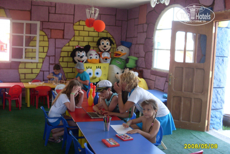 отдыхали с 06.05.2012 по 13.05.2012 с семьей 2взр +1 ребенок 4 года. Номер был с видом на море. С балкона открывался очень красивый вид. В номере большая кровать, плазма и все необходимое. Для ребенка мы попросили дополнительную кровать (раскладушка с большим и удобным матрасом) Остались очень ДОВОЛЬНЫ отелем. Приехали поздно вечером. Заселили нас буквально за 2 мин. и сразу провели на ужин. Еда очень разнообразная и вкусная особенно сладости (торты, пирожное, булочки.......). Много развлекательной программы (игры в бассейне, волейбол, футбол, теннис настольный, боча, стрельба из лука, гольф и так далее). Детская анимация работала на пять баллов. Очень большой детский городок. Многие родители, приводили детей аниматорам в 10 утра и забирали часов в 6 вечера. Каждый вечер была детская дискотека. У нас ребенок остался доволен. Отель можно сказать семейный т.к. практически каждая вторая пара была минимум с одним ребенком. Приветливый, отзывчивый и внимательный персонал.