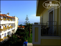 При покупке тура Пегас обещал апартаменты в 40 кв. метров. Разместили нас в номере около 20 кв.метров, но мы не стали спешить с разборками. Все аппартаменты окнами и балконами выходят на дорогу. Номер, который предложили нам, имел фронтальный вид на соседний отель Неон. Но! Левый боковой вид был на гору, по которой серпантином поднималась дорога на Мохос, а правый-на море, шум прибоя которого мы жадно впитывали каждую ночь!