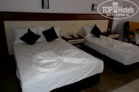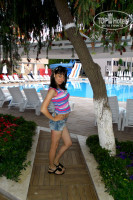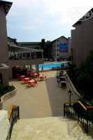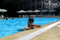 отдыхали с 5 мая по 12 впринципе все понравилось. Территория отеля маленькая но уютненькая все под боком, отель очень хорош для пар которые едут с детьми, ну и для молодежи не плохо. Много развлечений водное поло, тенис, аэробика, дарц,волейбол и многое другое вообщем скучать некогда. Читала предыдущие отзывы тех кто отдыхал в то же время что и мы и шокирована немного вода в бассейнах была нормальная море тоже было теплое а с 10 числа где то в часа 3 ходили купаться вода вообще была как парное молоко. Кухня тоже понравилась читала что мяса не было не знаю когда вы приходили но мясо было и курица и мититеички маленькие в подливе из телятины и рыба вообщем на любой вкус ну на щет фруктов да маловато. Завтраки вообще супер кто то писал что только рисовая каша наверное вы очень позно приходили на завтрак и яйца в любом виде и каша, и хлопья с молоком, и булочка с маслом, и калбаски, сыр вообщем на любой вкус даже в один день блинчики были горячие, что касается номера, то большой просторный но ванна маленькая, раковина была подбита, телевизор маленький, но в принципе мы же не едим туда чтоб в номере сидеть целыми днями, а на отдых на море так что это как то мелочи. Аниматоры молодцы особенно на 9 мая спасибо за торт. Экскурсии просто супер гид очень интересно все рассказывал.Пляж чистый вода прозрачная. Вообщем все понравилось.Соответствуем 4 звездам.