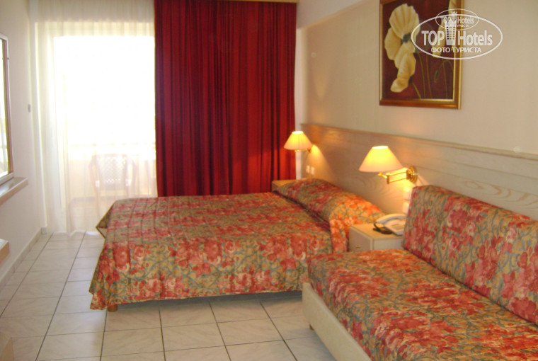 Всего в отеле 70 номеров, балконы во всех номерах, минибар (пустой), телевизор с русскими каналами, сейф 20 евро/неделя, Wi-Fi в номерах – 5 евро/сутки. Номерной фонд хороший, всё чисто, уютно.