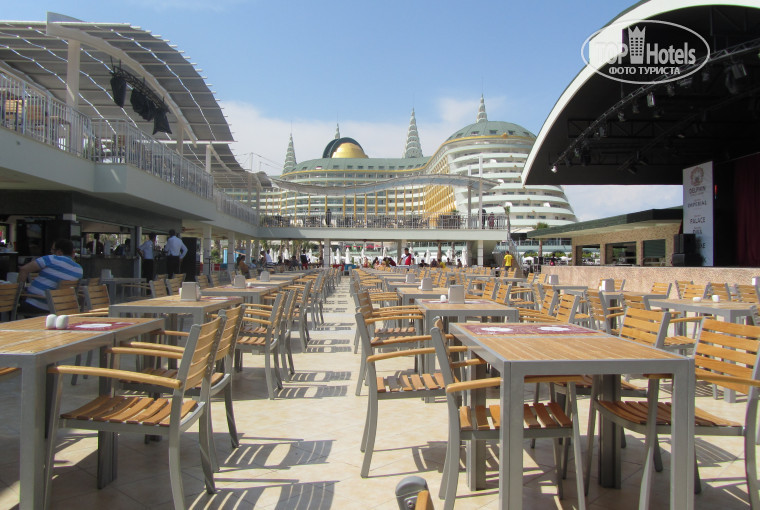 Отель- СУПЕР!!! Питание такое, что за все время прибывания всего даже не попробуешь. Шампанское итальянское наливают пока не лопнешь, все напитки импортные. Над интерьером отеля видно славно потрудились: номера обалденные, чего только один душ "стоит", на каждом этаже своя тематика (пару раз выходили не на своем, и понимали, что не наш по отличию в интерьере), очень много различных баров и мест для проведения досуга. В общем скажу так, что побывать во всех интересных местах отеля просто не реально. В 1-ый день приезда попали на гала-шоу, вынесли огроменный торт, потом был салют, а потом все желающие отправились на дискотеку, на которой мы побывали всего один раз, было все очень весело. Так отдохнули, что на следующий день некоторые ничего не помнили. а в последний день, перед самым отъездом, попали на махито-шоу, выступала какая то турецкая группа. Обслуживание в отеле на высшем уровне. Постоянно подходили официанты и спрашивали, что будем заказывать. Пару раз в холле, возле лобби-бара, попадали на обход главного менеджера отеля (они называют его шефом), при этом он обошел все столики с гостями и у каждого поинтересовался все ли в порядке. Нашу компанию из 4-х человек шеф отметил как VIP гостей, узнав, что мы из Белоруссии, и распорядился для нас виски Джек Дэниэлс и Чивас Регал (т.к. их наливали за дополнительную плату), а для нас девчонок шампанское в бутылке в номер. Вообще напитки в бутылках в номер не дают, только в баре или в других местах такого рода, но нам повезло. А детям там вообще много развлечений, и водные горки, и луна парк вечером, и детский клуб и т.п. Ну что тут говорить, - новый отель, все новое. В общем всем рекомендую ехать именно в него!