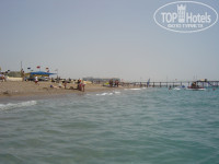 Пляж не хороший. Песок вперемешку с мелкими острыми камушками-( и это эще цветочки и терпимо), ходить босиком мало приятно.А при входе в море !!!! много больших глыб и камней. Навесы от воды далеко( 15-20 метров), люди сами тащат лежаки к воде поближе и загорают без защитных козырьков. Но многие не рискуют получить ожог и лежат в дали от моря. .