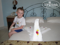 Постельное белье и полотенца менялись ежедневно, уборщик оказался парнем с талантом - каждый день он закручивал новые скульптуры из полотенец - лебеди, цветочки, кораблики. Да ещё и декорированные лепестками и бутонами живых цветов. Жене и детям очень нравилось. Конечно он тоже не оставался без чаевых.