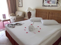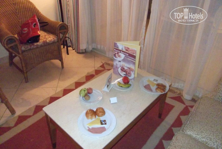 Что не понравилось, это то, что нас не проводили до номера, нам показали где лифт, и что наш номер на 2 этаже. Когда спустились (да спустились а не поднялись, т.к. отель стоит на горе ресепшен находится на 5 этаже) нас встретила мгла, либо из экономии либ по каким другим причинам у них лампочки на ватт 20. В этом кромешном сумраке, мы нашли свой номер, когда вошли нас ждал сюрприз, булочки, масла и сыр, колбаса, также один банан, два персика и два яблока, т.к. мы были голодные мы были очень рады хотя бы этому )) Наш багаж принесли через минут 10. Номер был чистые, просторный. Мебель в номере не новая, сломанного нечего не было, у нас было в номере двуспальная кровать и диванчик , кондиционер работал без проблем, был сейф, ТВ очень старенький (наверно один из первых цветных телевизоров), показывает 2 русских канала. Мы удалили свой голод, помылись и легли спать.