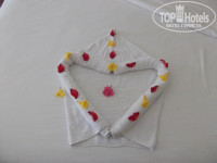 Убирались каждый день, чисто и аккуратно. Оставляли бакшиш по 1 доллару, за это нам выделывали из полотенец разные фигуры, жена была довольна. Полотенца меняли через день, были шампуни, гель и мыло, фен.