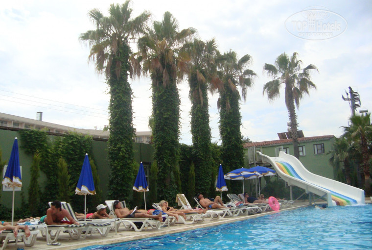Хороший отель. Недалеко от аэропорта, доехали быстро. Отдыхали с Анекс-тур. Приехали в отель часов в 10. На рецепции заполнили анкеты за пару минут и получили ключи от номера. Номер на 3х. 2 взрослых и ребенок. На 2 этаже 4х этажного корпуса. Номер небольшой, но чистый. Вода горячая в наличии была все время, вода в ванной уходила исправно, вся сантехника в рабочем состоянии, может не новая, но чисто. Никакой живности в номере не заметила. В мае было прохладно, включали кондиционер, т.к. шерстяные пледы, видимо, были очень натуральными и пахли козлами. Или продуктами их жизнедеятельности)))) Еда на 4. Кура, индейка, рыба каждый день и куча овощей в разном виде, картошка фри, макароны, фасоль, пекли блины,оладьи. На завтрак яйца, омлет или глазунья, симит, йогурт, каша и еще куча всего. Не голодали. Обслуживание: к горничным без претензий, белье, полотенца меняли каждый день. Крутили лебедей без чаевых. Официанты не лезут, не хамят, бегают шустро.