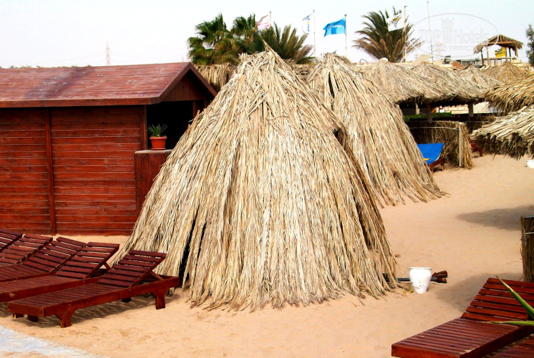 Море... Если ваш номер у бассейна, то до моря придется потопать... Минуты 2-5, в зависимости от прогулочности шага (и наоборот: номер у моря - топаем к бассейну), мимо финиковых пальм, стриженных газонов и художественно обрезанных кустов, по аккуратно вымощенным дорожкам. А вот береговая линия Али Бабы оставляет желать лучшего. Под водой немало неприятных валунов. Поэтому проходим чуть дальше, на пляжи соседних отелей Аладдин и Жасмин. Хозяин у них тот же, что и у Али Бабы, поэтому перемещение по территории всех трех отелей не ограничено. С самого начала нам больше понравился пляж Жасмин, с очень пологим спуском в воду и отсутствием подводных сюрпризов. Но в итоге разонравился он нам так же быстро, потому как топать до буйков и дотопать лишь до глубины под пупок удовольствие для извращенцев. Идем на пляж Аладдин, где левая его половина, та, что ближе к Жасмину, вполне удовлетворила наш семейный отдых. У буйков по шею, детям метров 10-15 простора от береговой линии. Лежаки и матрацы у воды как правило "типо заняты". Берем "мальчика-араба", показываем ему где хотим разместиться у воды и он тащит нам новые лежаки и матрацы в неограниченных количествах.