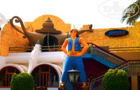 Теперь о соседях... Территория отелей Аладдин и Жасмин (далее по тексту А. и Ж.) При желании, можно питаться и там, правда для этого надо предварительно получить на рецепшене квиточек (рекомендуется это сделать за сутки). Но я не рекомендую идти в харчевни А. и Ж., потому как они сравнительно меньше по размеру и совершенно не кондиционируются. А если и есть кондиционеры, то толку от них нет, потому как народу совсем не меньше. Более того, персонал на территории А. и Ж. угрюмый. Если Али Бабаевский баремен наливая пиво улыбается и пытается шутить, то бармены А. и Ж. смотрят на тебя так, как будто ты им денег немеряно должен и уже несколько лет динамишь с возвратом. Бассейны А. и Ж. совсем маленькие. При чем находятся в 50- 100 - метровой зоне от береговой линии моря, поэтому идти и до них как и до моря, жителям А. и Ж. одинаково далеко. А через дорогу... Стоит отель Титаник с аква-парком и небольшой торговый центр, имеющий в своем распоряжении не лишний "фиксед прайз". Что до аква-парка, то одно посещение вам дадут бесплатно (на рецепшене Али Бабы выпишут), но при должной хитрости можно его посещать на халяву многократно. Мы набрали десяток талончиков, находили бабулек,которым явно горки не нужны ,записывали номер их комнат и выписывали себе эти талоны(разумеется с их разрешения).