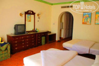 В номере убирались ежедневно, с водой и полотенцами перебоев не было, все имелось с излишком. Правда, мы оставляли уборщику по баксу в день, за что он нас чуть не во все места готов был целовать: регулярно при встрече справлялся не нужно ли что-нибудь еще .В отеле 3 ресторана. Но кормят в них одним и тем же, за исключением некоторых мелочей. Например, в Итальянском всегда есть макароны. Помимо этого, имеется харчевня на пляже. Проблем с питанием не было. Детской кухни как таковой нет но, что нибудь подобрать из еды всегда можно ( молоко,творог,протертые супчики есть всегда). На завтрак всегда были горячие блинчики, при тебе готовят яичницу из чего душа пожелает, всегда есть свежие овощи из которых опять таки при тебе сделают любую, вплоть до фигурной, нарезку, ну и все остальное по стандартам. В обед всегда дают мороженое - около 6-8 сортов на выбор. Фруктов, правда, маловато.Но мы без фруктов и дома не особо страдаем, поэтому разочарований не было. Официанты (равно как и персонал) не навязчивые. Если дать копеечку самому официанту, носится раза в три быстрее. Сразу хочу опередить – снобов и тагильщину – ДАВАТЬ ЧАЕВЫЕ ,ПРИНЯТО ВО ВСЕМ МИРЕ И ЭТО ХОРОШИЙ ТОН , а еще зарплата официанта 100 $ ,повара 115$ - Жалко что ли 30 рублей в день в обмен на вежливость и любвеобильное отношение?