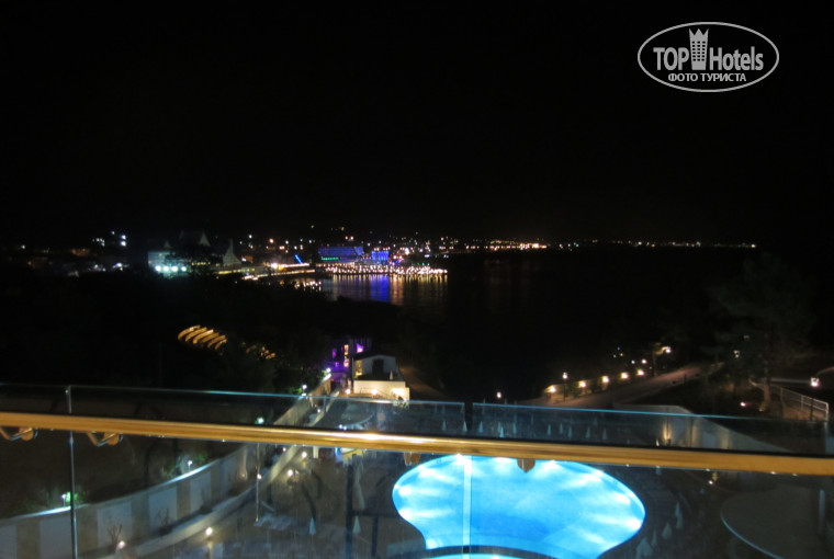 В отель приехали после 9 часов вечера. Сразу до регистрации нас проводили в ресторан, что бы мы могли поужинать. Номер дали тоже сразу, но нам не понравился вид из окна, поэтому за дополнительную плату номер нам поменяли и мы имели замечательный вид из окна на море и два соседних отеля, Granada вечером очень красиво подсвечена, да и все побережье до Алании.