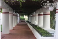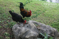 Территория отеля. Отель относительно большой. Расселяют гостей в основное здание и бунгало. Вся тусовка проходит на пятачке рядом с бассейнами. Это место компактное и очень по-умному использовано. Есть открытый амфитеатр. Есть горки. Есть лягушатник для детей. Лежаков у бассейнов хватало. Так, чтобы их кто-то занимал ни свет, ни заря – не наблюдали. Территория очень зеленая, красивая и ухоженная! Красно-белый отель очень красиво смотрится на фоне гор и зелени! Хватает на территории уголков, где в тенечке можно посидеть и отдохнуть. Много цветущих кустарников, цветов. А еще на территории в районе основного ресторана тусуются куры и петухи :)