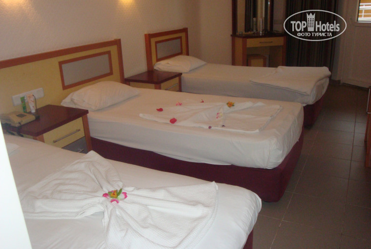 1. Отдыхала с 16.05 по 22.05.2012. Читала в отзывах про ужасы заселения и т. д. Но! Нам повезло, номер был без дополнительной платы с видом на море (развод). Нам дали на 2-их трехместный. Даже если не подошел номер, можно в течении нескольких дней переселиться. Гиды в этом активно помогают. Хорошо, что не бунгало, т.к. напротив бунгало дискотека до 2 ночи, заснуть не реально. Не советую, если вы сами на этой дискотеке не тусите постоянно. В номере только спала, поэтому на качество уборки не обращала внимания,а полотенца исправно были свежие. Что радовало? Персонал говорит отлично на русском. в Мармарисе персонал был только на английском, с моим-то немецким. Отдохнули отлично, без детей, без мужей, поэтому все было супер.Территория очень симпотичная, ухоженная, как на представленных фотках отеля.