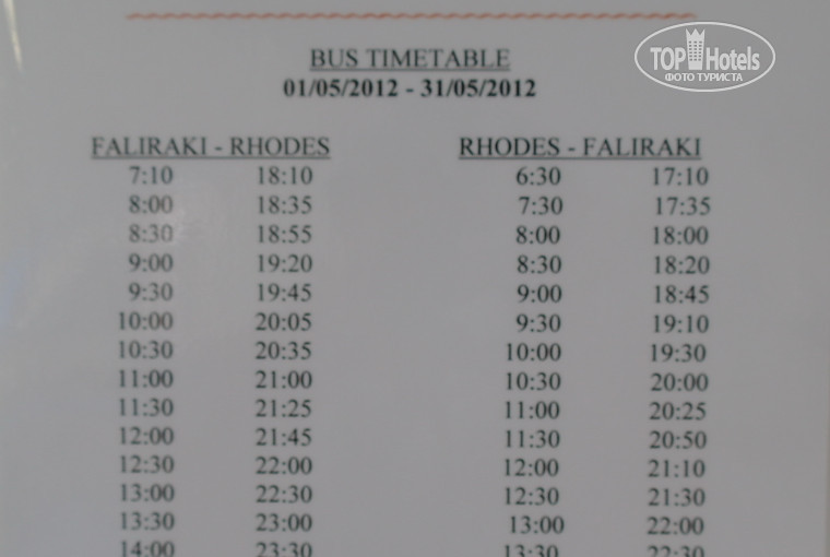Автобусы ездят постоянно в Родос (каждые полчаса) и в Линдос (по расписанию). Ездил в Родос в Старый и Новый город. Впечатления шикарные. Старый город великолепен. Портит только всё очень большое количество магазинчиков и отсутствие указателей в старом городе. Новый город тоже хорош. Впечатления только положительный. Вопрос с туалетом решается сложно. Их просто почти нету. На главном входе есть публичный туалет, но он платный и стоит 0,5 евро. Учтите этот момент. А общее впечатление: разруха в городах и посёлках, где много недостроек брошено и много домов продаётся (последствия кризиса), красота природа и крайне чистый воздух. До того чистый, что не вериться. Чуствуется каждый запах и аромат.