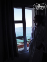 Номер. Наш номер был с видом на море, прямо перед пирсом. Это просто рай! Не пожалели ни на секунду, когда меняли номер с видом на сад (очень темный) на этот номер. В номере есть все, правда, комната с кухней в реальности оказалась меньше чем на фото, а вернее, спальня и гостиная по размеру одинаковы. Места и шкафов достаточно для 1-2 детей и родителей, а большая терраса делает номер еще просторней, есть где побегать ребенку. В комнате с кухней стоит кровать, у которой выдвигается еще снизу спальное место. Получается типа двухярусной кровати, мы выдвигали эту часть, чтобы ребенок ночью случайно не упал на плитку. Плитка холодная, и я очень пожалела, что не взяла теплые носки, но я всегда мерзну. А муж ходил босиком и ничего. Ребенок бегал в тапках. В этот отель я сначала не хотела ехать, потому что хотела отдохнуть от кухни и приготовления еды, и увидев кухонный уголок, не поняла сначала всех его плюсов. Я рада, что ошиблась, одно удовольствие - готовить еду из здешних овощей и фруктов! Пару раз, правда, варила суп из пакетиков, ради экзотики. Но готовка не напрягала, а была частью удачного отдыха!