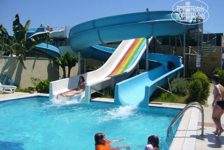 Территория отеля маленькая, но зато все рядом :) вышел и в бассейн плюхнулся, горки водные есть, даже в аквапарк можно не ездить, все равно там больше в очередях стоять, чем кататься. Есть крытый бассейн, есть сауна (бесплатно!)