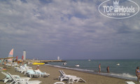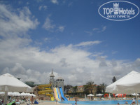 На следующее утро мы пошли осваивать территорию, территория реально большая, ухоженная. Античные "дорожки" с крышами и перилами с колоннами придают пикантность. Фонтаны, водопады, куча а-ля карт ресторанов в разных стилях, очень красиво! При нас еще вовсю велись работы по облагораживанию территории, высаживали деревья, цветы, оформляли газоны.Три детских бассейна (один в мини-клубе под тентом), два больших взрослых+крытый детский и взрослый с джакузи, горки для детей и взрослых. Пляж тоже порадовал, места много, пляж не муниципальный, а свой, отельный, никаких посторонних. Часть пляжа отдельно через мостик, туда с детьми не пускают вроде как (висит объявление), видимо, для тех, кого раздражают детские вопли, что очень хорошо (если б были без детей ходили бы туда)))