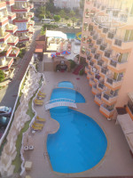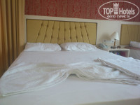 Отдыхали в этом отеле с 17 по 28 мая. Дорога из аэропорта не просто долгая, а очень долгая - 3,5 часа. на рецепции работают казахские девушки, свободно разговаривающие на русском и турецком, и английском языках - это и подкупает многих туристов, кажется соотечественницы не обманут..., но дело, по-крайней мере с нами, происходило примерно так: зная, благодаря этому сайту, что заселяться лучше только в блоке А и только на 6 этаже, мы рассчитывали именно на это. дали 30 $ чтобы наверняка, но нам сказали, что 6 этаж весь занят, но она нам дала прекрасный номер. пошли смотреть этот номер 213! он оказался угловым и настолько маленьким, что дверь в туалет открывается только на половину, т.е. в туалет пришлось бы заходить бочком. мы пошли менять, дала 5 ключей на выбор на разных этажах, кроме 6!!!! остановились на одном 2 +1 (хотя бы из-за доп.кровати немного больше места), но оказалось, что не работает ни кондер, ни телевизор. пошли опять... и о, чудо, пока мы ходили (примерно около часа) 6 этаж видимо кто-то освободил :) и нам дали карточку от номера на 6 этаже. когда мы приехали на 6 этаж, нам показалось, что мы попали в другой отель..... разительно отличается, не зря советовали, большое спасибо тем людям и нашей настойчивости конечно. номер хоть небольшой (но нам видимо просто везло в этот день) достался 2 + 1, но все новое: телевизор плазма, кондер, кровати, белье, шкафы и т.д. все работало, что не могло не радовать... сейф платный - 2 $ в сутки - мы не брали, хранили все ценные вещи в чемодане на замкеи под кодом (по истечении нескольких дней вдруг пришли проверять не пользуемся ли мы сейфом на халяву), бутилированной воды в отеле нет вообще, т.е. в минибаре стоят 2 бутылки воды, но они уже платные!!!!! при заселении, кстати, с вас возьмут 10 $ депозит за ключ (при выезде возвращают) на сайте написано, что настольный теннис бесплатно - это оказалось враньем! при заселении дают распечатанную бумажку с расписанием ресторана, с платными и бесплатными услугами! но даже за деньги, нам отказались ставить этот обглоданный стол для настольного тенниса :( дальше по персоналу: при входе сидит еще одна казахская девушка Гуля, которая предлагает SPA услуги, бани и массаж. мы с ней поговорили послушали, что они предлагают и сказали, что подумаем. потом нас каждый раз когда видел ее видимо начальник - турок (вы его ни с кем не спутаете, звали мы его (а это не только мы, но еще половина русских, белорусов, украинцев - вообщем те, кто отказался от его услуг - Артемон!!!) доставал просто вопросом - что все еще думаете? на что после 60 раза мы его тактично попросили не спрашивать нас каждый раз об его бани, так он перестает с такими туристами даже здороваться. бармены вежливые, услужливые, как в лобби баре в отеле, так и на пляже и в ресторане. правда, раки не было ни одного дня, тем кто хочет попробовать, придется купить, вино нам не понравилось, пиво нормальное, виски, джин и водка так себе, но выпить можно.