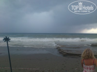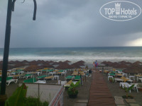 море находится очень близко, лежаков хватало всем, матрацев тоже, но полотенец нет. дешевле всего купить там такие полосатые широкие как шарфы (3 штуки за 5 $), многие так и делают и стелить их на матрацы. пляж галька, заход в море не очень. между двух каменных плит вырублено примерно метров 10, где как раз все и заходят. если на море волны - заходить и выходить из моря плохо, тебя стаскивает на эти каменные плиты и ты бьешься об камень всем, что можно, все в синяках, у кого спина разодрана, у кого мизинец сломан. море само было просто чистейшее. в те дни, когда можно было поплавать отплываешь на большое расстояние и видно дно.