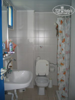 Номер тоже неплохой достался, с видом на море, нормальная мебель, видно что не так давно марафет в нем наводили, раньше он был явно страшнее - об этом напиминала оставшияся со старых времен покрашенная в синюю краску дверь в санузелом с ржавым ключем в замочной скважине. Сантехника (краны) тоже старые - покрыты каким-то вековым налетом - неприятно было за них браться, про спартанский душ с занавесочкой уже писали. короче на санузле похоже сэкономили...