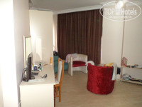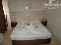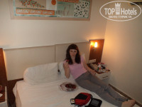 Мы путешествовали вдвоем с мужем. Приехали 22.05 и были в этом отеле до 5.06. Приехали в отель около 13 часов, вложили 20 баксов в паспорта, хотя можно было и не делать, на конечный результат не влияет, нас отправили обедать, после обеда надели браслеты и предложили номер 412, т.к. я просила не первый и не последний этажи. Номер нас не устроил, т.к. балкон выходил на крышу ресторана и на бассейн, а так как мы не любители по ночам слушать как люди возвращаются с дискотек, то хотелось, чтобы балкон выходил во внутренний двор. Таких номеров мало, это блок В и блок Е. Блок Е - это новоприобретенный блок, раньше это был отель Harmonia 3*. Нас поселили в блок В на второй этаж, номер 224. В целом номер неплох, небольших размеров, если туда ставить раскладушку, то прохода вообще не будет. Ремонта в нем еще не было, хотя остальные номера до 23 отремонтированы на всех этажах. Даже два знаменитых подвальных номера. Но в этом номере дверь в туалет упиралась в унитаз, поэтому открыть ее полностью было невозможно. И присутствовал неприятный запах канализации. Плюс ко всему нам мешало вечерняя анимация, т.к. из-за разницы во времени (4 часа) спать хотелось уже часов в 9. Даже при закрытом балконе если хочешь посмотреть телевизор, нужно было его делать погромче. Мы переночевали в этом номере одну ночь и пошли просить с утра другой номер. Парень на ресепшн сказал, что все заняты, долго что-то смотрел и только когда я начала повышать голос, подошел менеджер отеля, они пообщались на турецком и парень сообщил, что послезавтра нас переселят в блок Е. Вообще, менеджер постоянно за всем следит и если вы при нем будете немного повышать голос, ваши проблемы решаться быстрее. Он не обманул, нас переселили в блок Е. Несмотря на то, что это бывшая тройка, номера там намного просторнее, чем в блоках А, В, С, D. Плазменный телевизор с приставкой, более 3000 каналов, правда большинство на турецком)). И там намного тише, т.к он находится за блоком А и В.