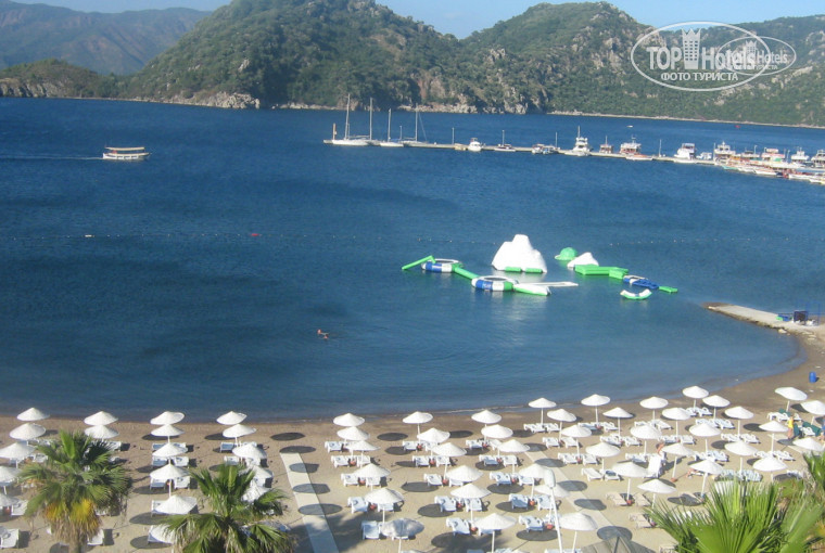 Отдыхала одна с20.05 по 1.06.12, в Турции не первый раз,до этого была в Алании,Белеке, Мармарис посетила впервые.Тур от фирмы Пегас.Прилетели вечером,рейс без задержек.В отель заселились в 23.00,номер покупала сивью,но он был занят до утра,поэтому дали простой.На следующий день в 11 утра дали мой номер с видом на море,очень сильно извинялись,в качестве подарка были преподнесены бутылка турецкого вина и блюдо с фруктами.