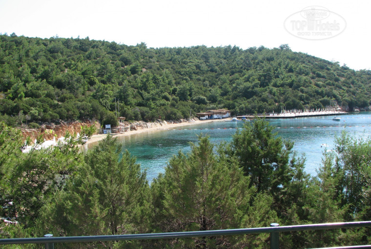 1 территория большая, красивая, парковая, сосны, ступеней не много, есть тенек, отель занимает полуостров - с одной стороны можно прогуляться на скалистый берег, море там бурливое, с другой бухта для купания