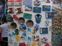 Номер оказался на последнем этаже с чудесным видом на море и был вполне комфортным. В комнате стояла двухспальная кровать с шестью подушками, диванчик, столик, огромное зеркало, ЖК-телевизор с двумя русскими каналами (РТР и ОРТ), тумбочки. Вещи свои мы разложили в огромном комоде и развесили на многочисленных плечиках. Там же в шкафу находится бесплатный сейф и холодильник. Ванная комната оборудована максимально. Кроме большого зеркала на стене, очень удобное двухстороннее зеркальце на подвижной ножке. Имеется биде. Слив в унитазе довольно непривычный. Сначала вода поднимается, а потом водоворотом уходит. Приятным сюрпризом было наличие шампуни, геля для душа, лосьона для тела, шапочки и швейного набора. В стене вмонтирована емкость с одноразовыми платочками.