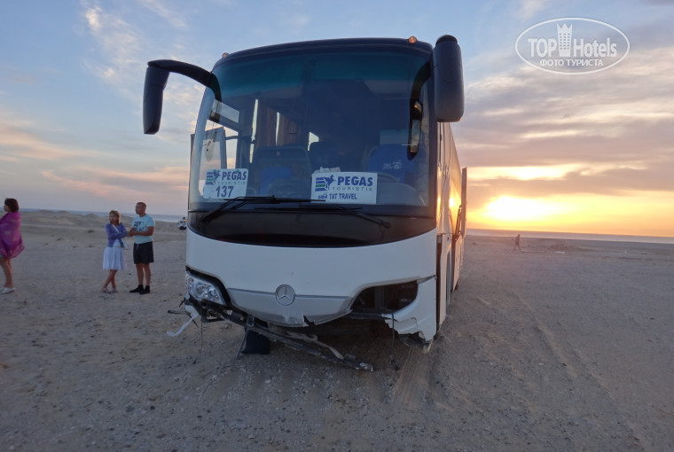 О Пегасе. На первой встрече с гидом, самый главный рассказ был об экскурсиях. О безопасности поездок с Пегасом, о 2-х водителях на дальние расстояния, о вооруженных полицейских, которые поедут с нами в Каир и Луксор. До обеда нужно было заказать у гида все экскурсии со скидкой на каждую 5 $ (видимо, чтобы люди не успели узнать,что недалеко от отеля экскурсии в 2 раза дешевле). Мы послушали нашего гида, и купили сразу экскурсии. Хочется рассказать о нашей поездке в Каир. По дороге у нас уснул водитель!!!! В результате чего автобус на скорости слетел с дороги, и нас хорошенько потрясло. Хорошо, что автобус не перевернулся, а реально это могло произойти. Никто не пострадал, у некоторых были только ушибы и ссадины. Но большой испуг получили все! Где та безопасность поездок Пегаса? Где был второй водитель? Не понятно. Через минут 30 за нами приехал другой автобус с туристами, который выехал чуть раньше. Но никакая экскурсия уже была не нужна. Без настроения и головной болью пробежались по музею и Пирамидам, и уехали домой. Была только радость, что остались живы.