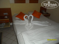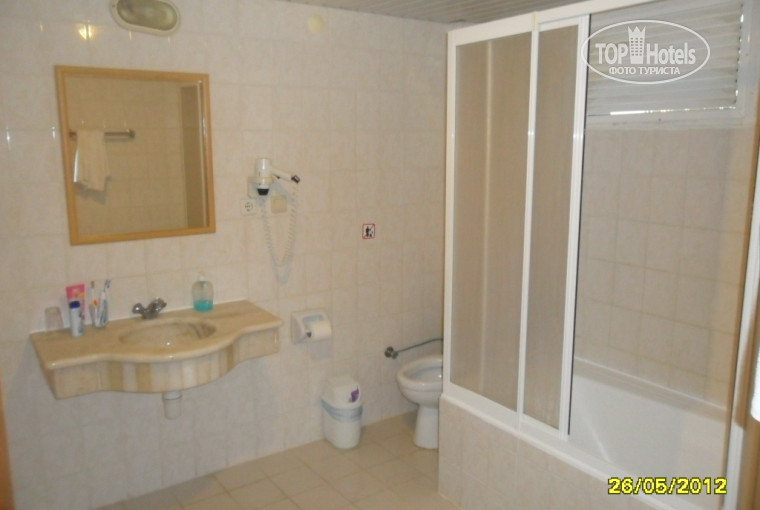 Теперь о номере: 20$ сделали свое дело - нас поселили в блок А - один из самых приличных - номер вполне себе просторный, балкон с видом на море и большой ванной комнатой. Коляску мы оставляли прямо на улице, так как номер был на 3 этаже, но я лично это не считаю за недостаток - хоть какая-то разминка))... С нами приехала еще одна семья, так вот их сначала заселили в виллу на первый этаж - там было очень сыро и очень холодно ночью, а у них тоже двое детей, так вот они без проблем на следующий день поменяли номер - тоже в блок А на второй этаж и были очень довольны. НО должна оговориться: в номерах нет мини-бара, т.е. холодильники отсутствуют, есть только ниша-шкафчик такой под телевизором, в официальной терминологии это звучит так: "мини-бар по запросу". И еще: пляжных полотенец тоже нет, берите с собой или покупайте в маркете прям возле ресепшн. А также - здесь нет сауны и турецкой бани (что огорчает конечно же)!!!! (Ровшан предлагает съездить с ним)